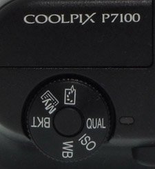 The unmarked button is used to release a ring around the lens barrel. Removing the ring reveals a bayonet thread used to attach the optional wide-angle adapter which gives a 21mm-equivalent field-of-view. The other button is marked Fn1. Its functionality when used with the shutter-release is quite odd. Basically, when pressed while also pressing the shutter, the Fn1 button temporarily resets one parameter. This can be ISO sensitivity, White-balance and Picture-Control. It can also toggle the file-format between JPEG and RAW. On the P7100, unlike its predecessor, it can be used with the top control-dials as well. This gives access to Manual Focus, Metering, Continuous Drive, Flash Exposure-Compensation, Active D-Lighting and Manual Flash-Level. This is exactly the suggestion we wrote in the Nikon P7000 review last year!