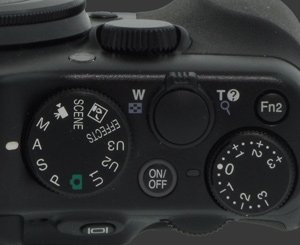 Further right is the exposure-compensation dial. It dials EC in 1/3 EV steps and works in most camera modes except for a few Scene ones. Thankfully it does work in Panorama-Assist mode. When this dial is positioned anywhere other than zero, a small orange light turns on to remind the user that exposure-compensation is in effect. This is simply a great design. The only limitation is that 1/2 EV stops are not available on this camera since the dial has hard clicks for 1/3 EV increments.