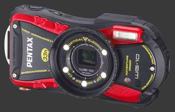 Finally, Pentax is introducing a lower-cost but very rugged camera, the Pentax WG-10. This one goes down to 10m underwater and can survive drops from 1.5m. Like the WG-3, it is also freezeproof to -10C, crushproof to 100kg, dustproof and completely weatherproof.