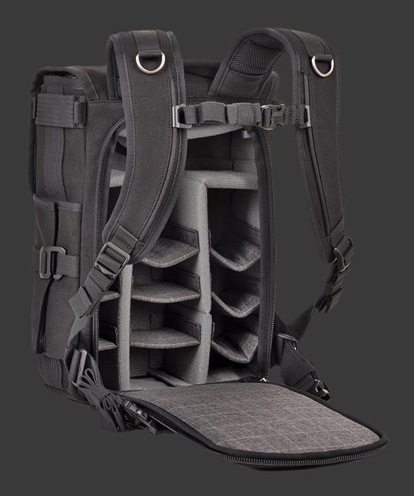 The new Think Tank Photo Retrospective Backpack 15L offers dual-access with a quick top-flap to reach frequently-used gear and a large opening real panel that gives comfortable access to the main compartment while placing it out-of-reach from thieves. There are additional pockets on three sides and attachment points for a tripod on the side and front panel. Each side has a collapsible water bottle pocket.